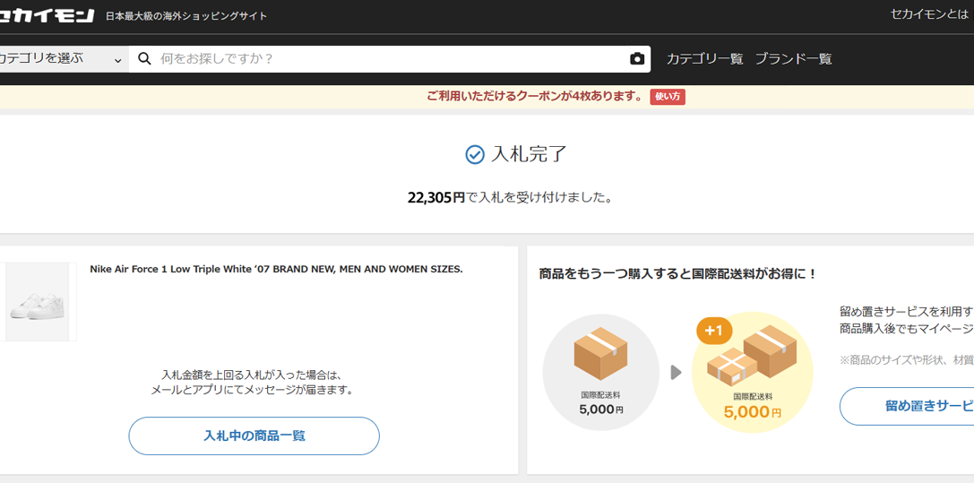 6.支払いが完了し、セカイモンの購入完了ページに自動で遷移する